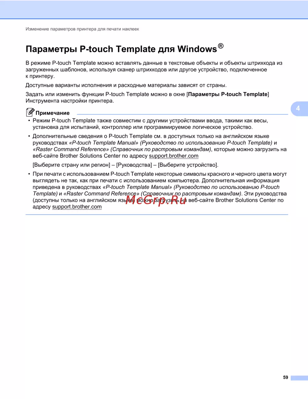 руководствах «P-touch Template Manual» (Руководство по использованию P-touch Template) и