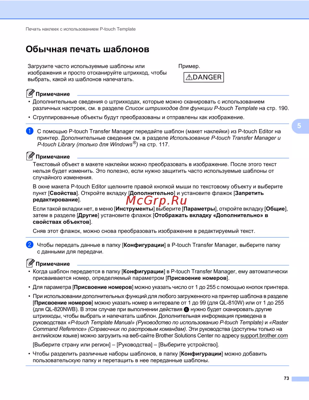 руководствах «P-touch Template Manual» (Руководство по использованию P-touch Template) и «Raster