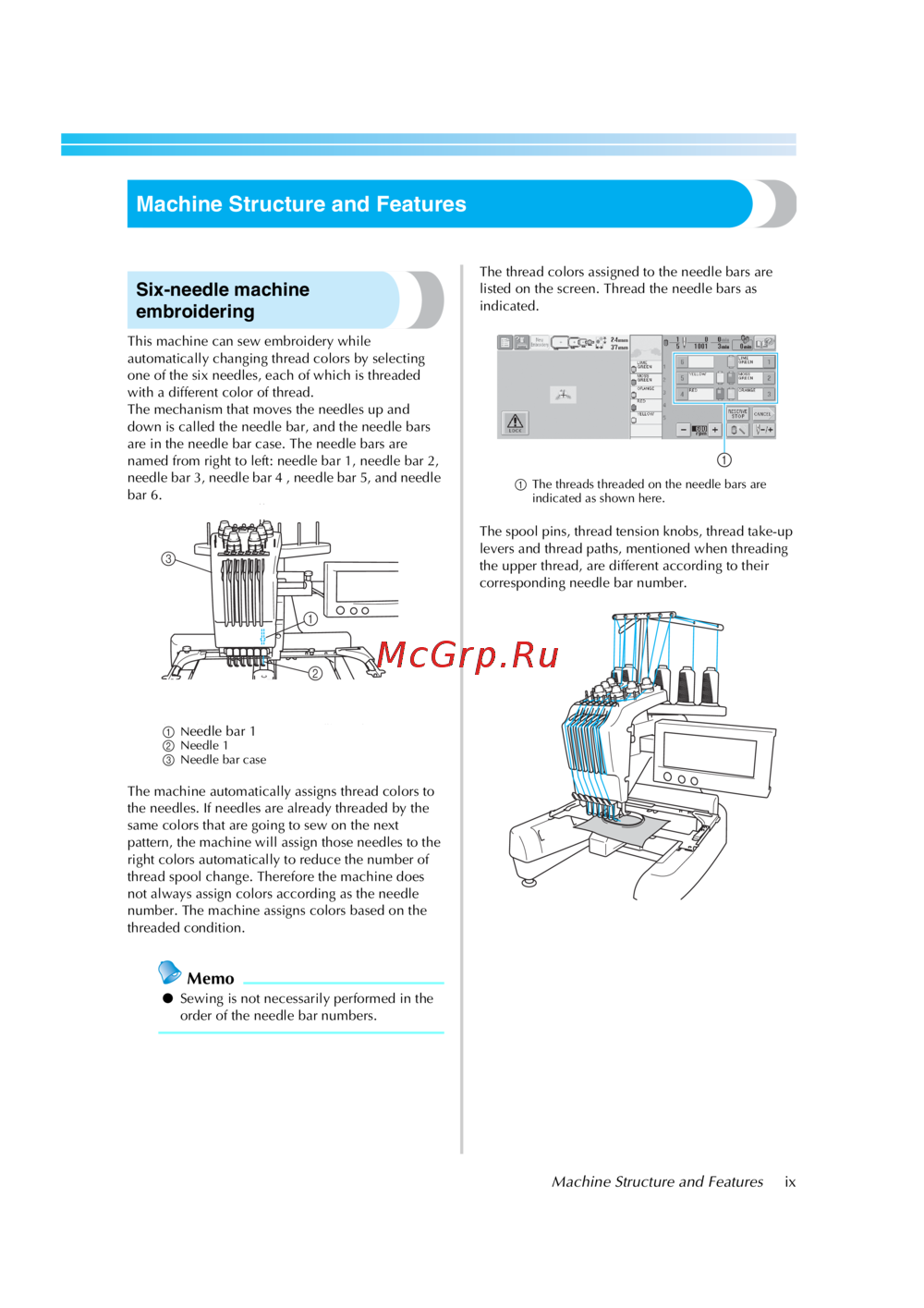 - Changing the thread spools with designs of seven or more colors 5 p.17