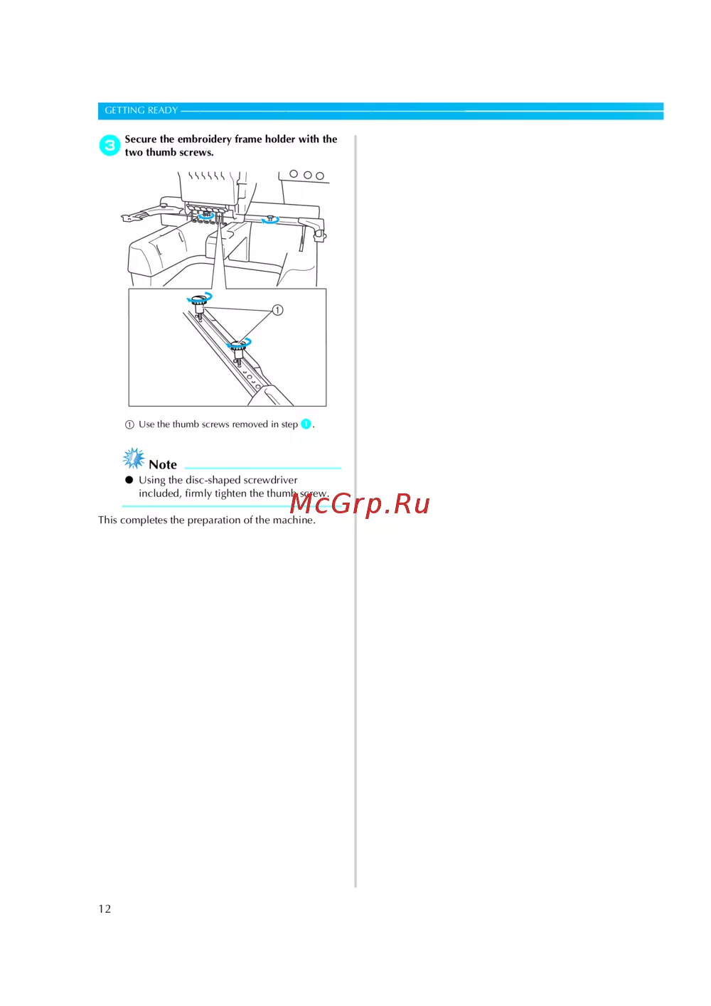 Brother PR-600C [31/229] Using the disc shaped screwdriver included firmly tighten the thumb screw