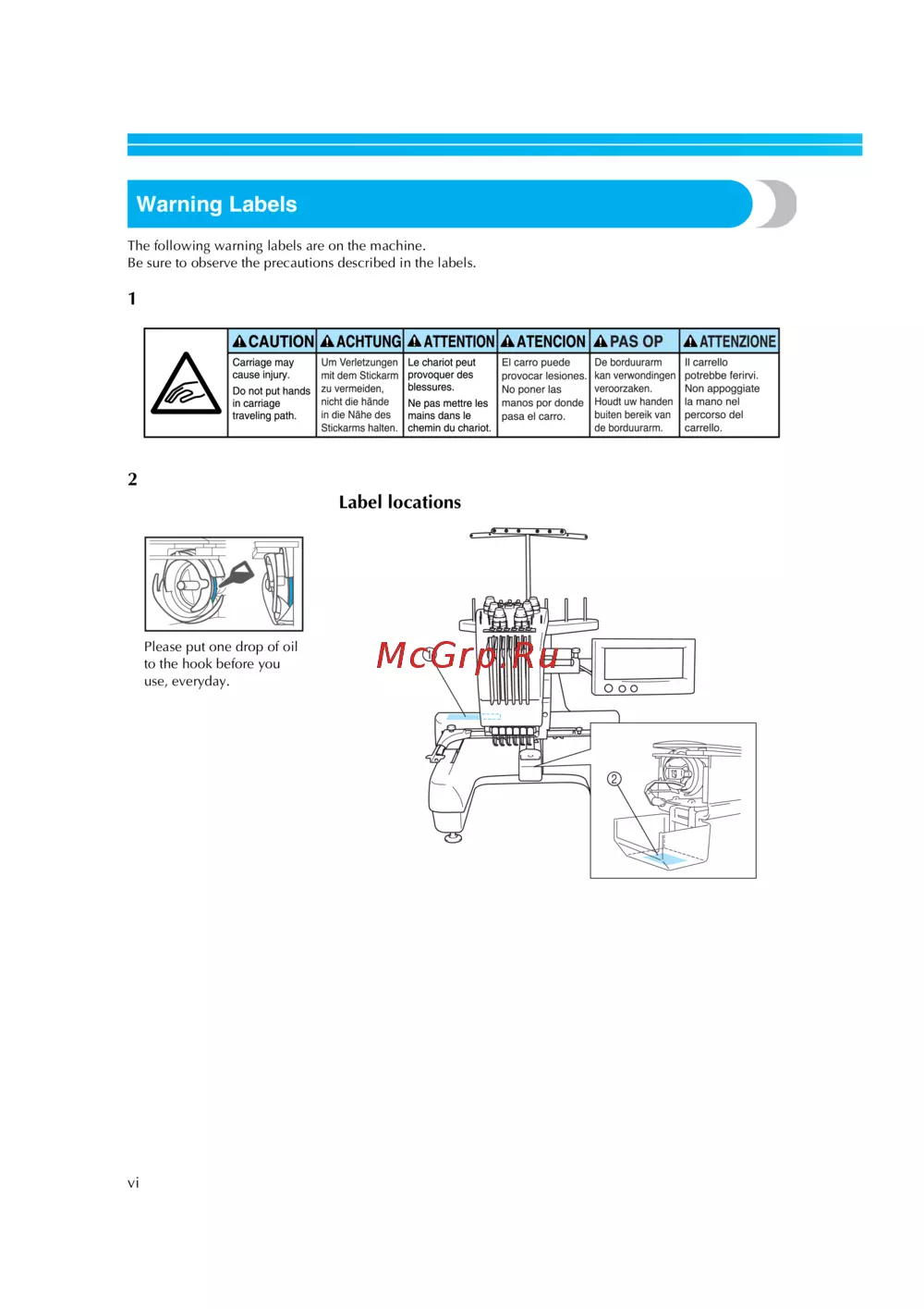 ![Brother PR-600C [7/229] Warning labels](/views2/1470817/page7/bg7.png)