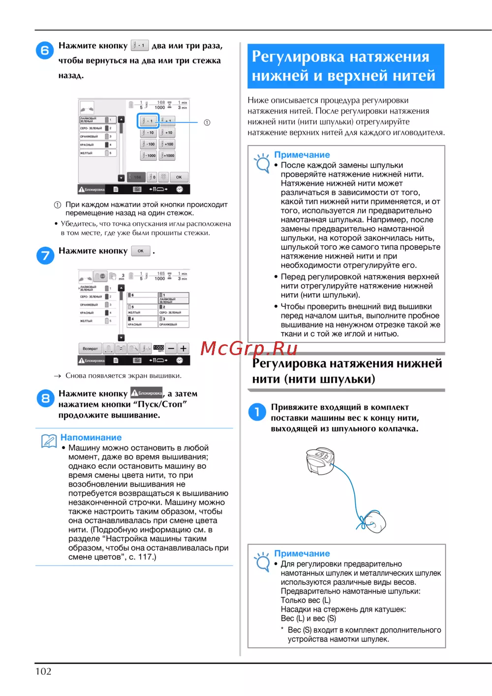 - Данная машина оснащена механизмом обнаружения нити если в машину не заправлена верхняя нить машина не будет работать нормально даже если нажать кнопку пуск стоп после разблокирования машины p.224