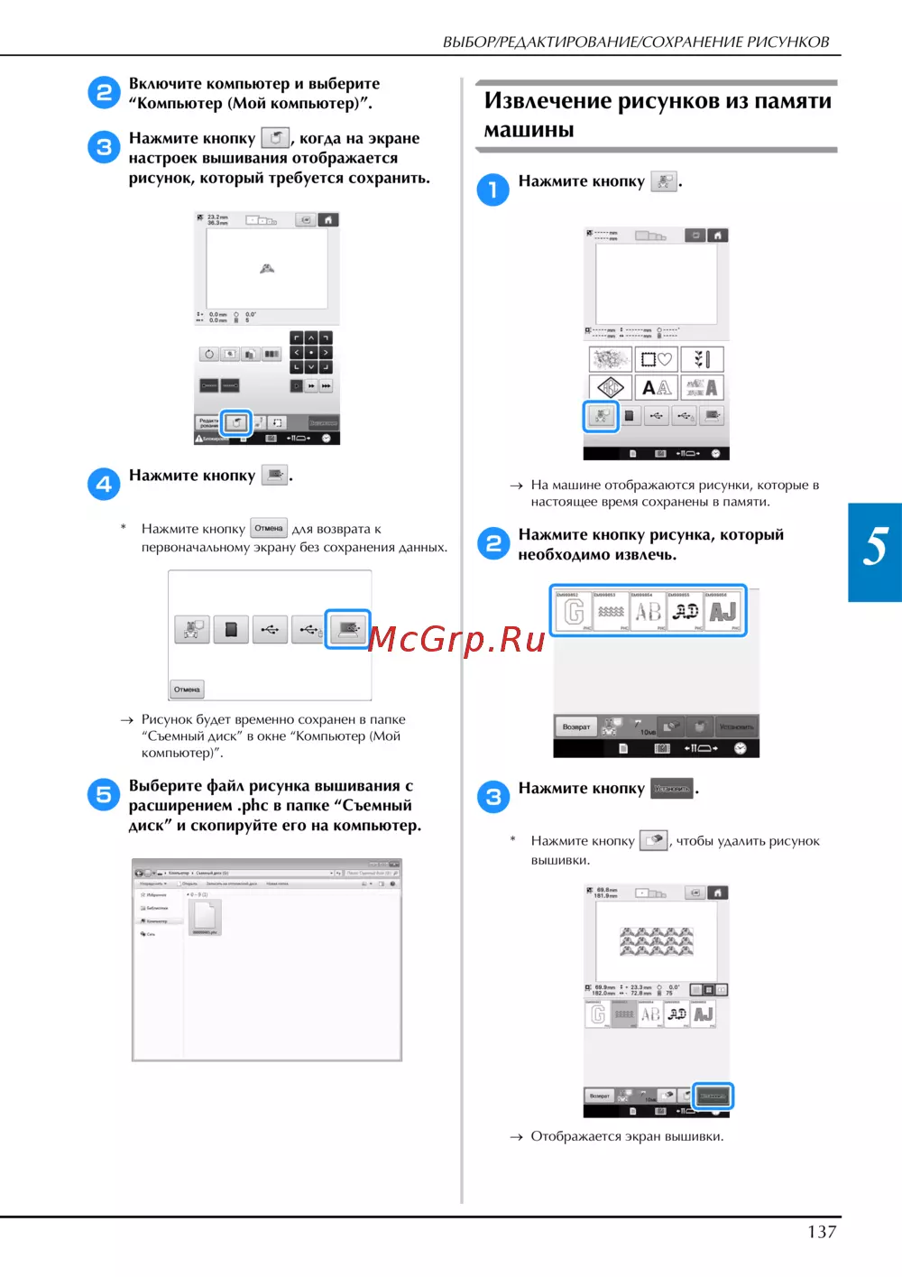 Brother PR670E — как выбрать, редактировать и сохранять рисунки на компьютере [139/244]