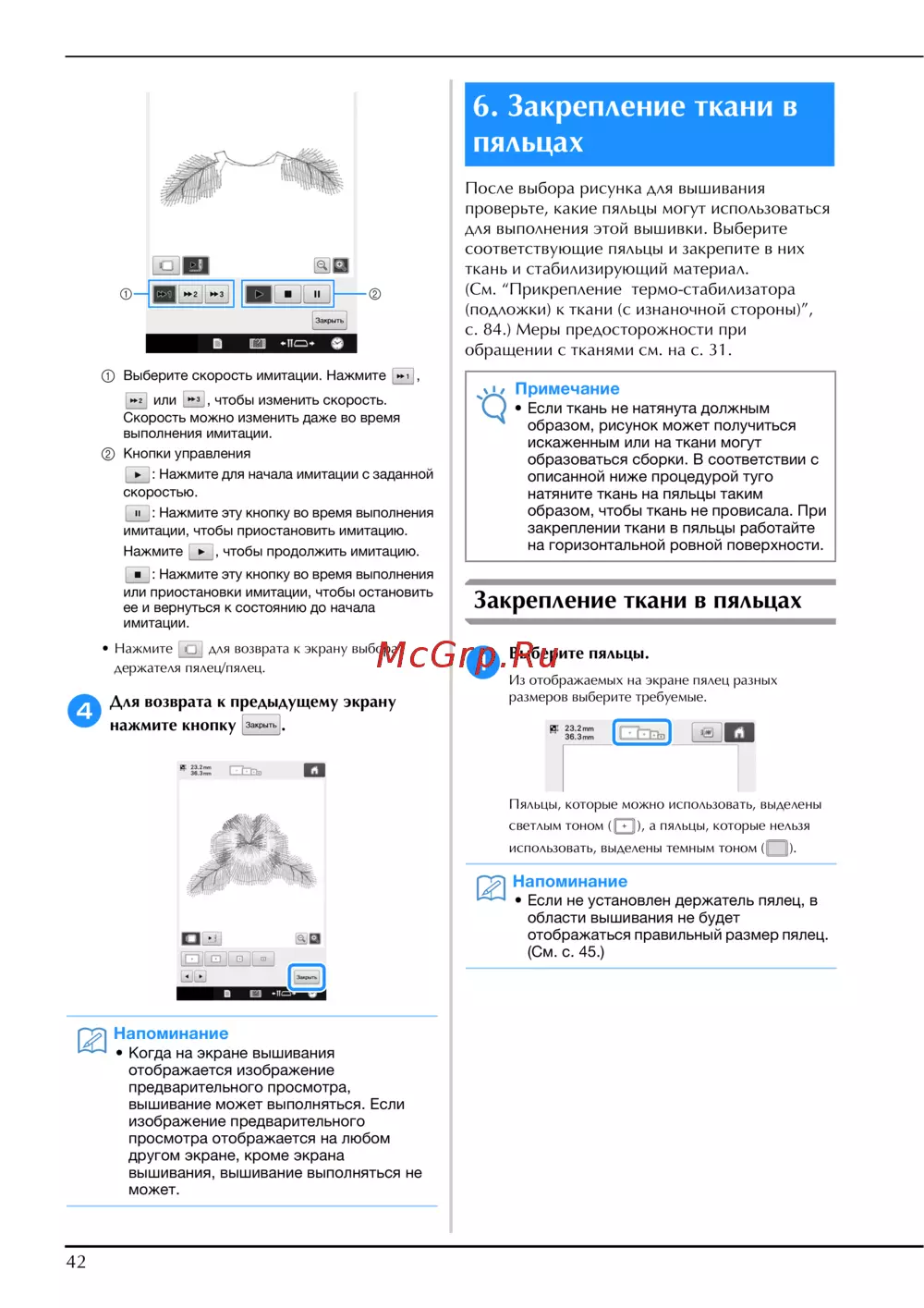 - При автоматическом вышивании уменьшается время вышивания p.10