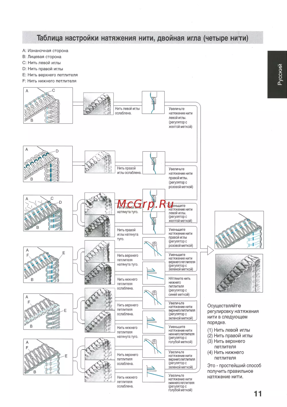 - Таблица настройки натяжения нити двойная игла четыре нити p.13