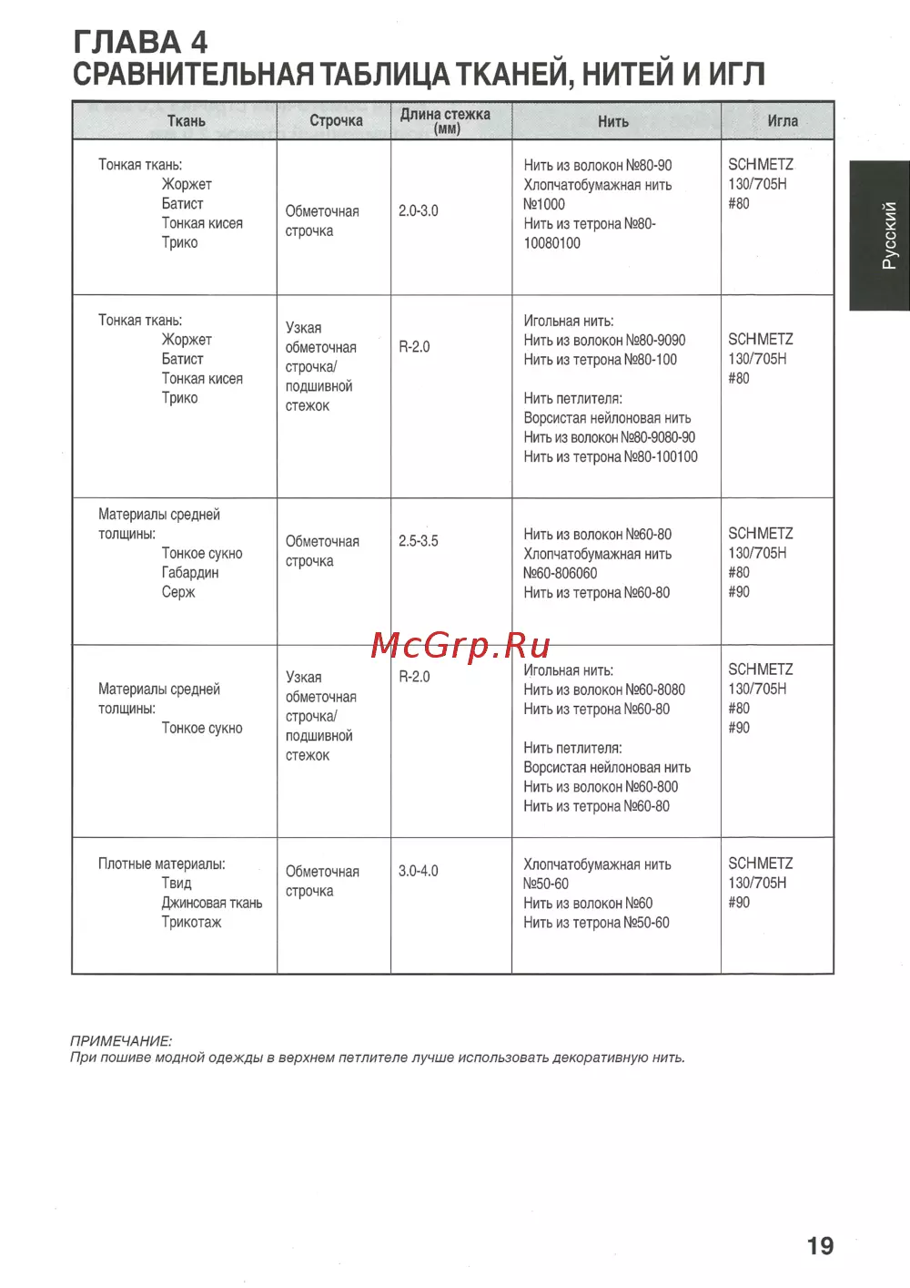 - Глава 4 сравнительная таблица тканей нитей и игл p.5