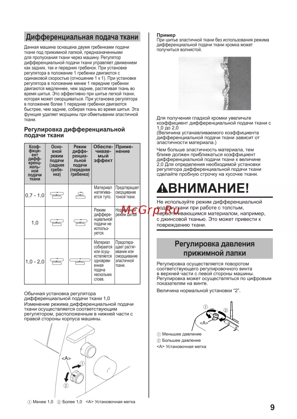 Узнайте, как правильно настроить дифференциальную подачу ткани на швейной машине для достижения идеальных результатов при шитье различных материалов.