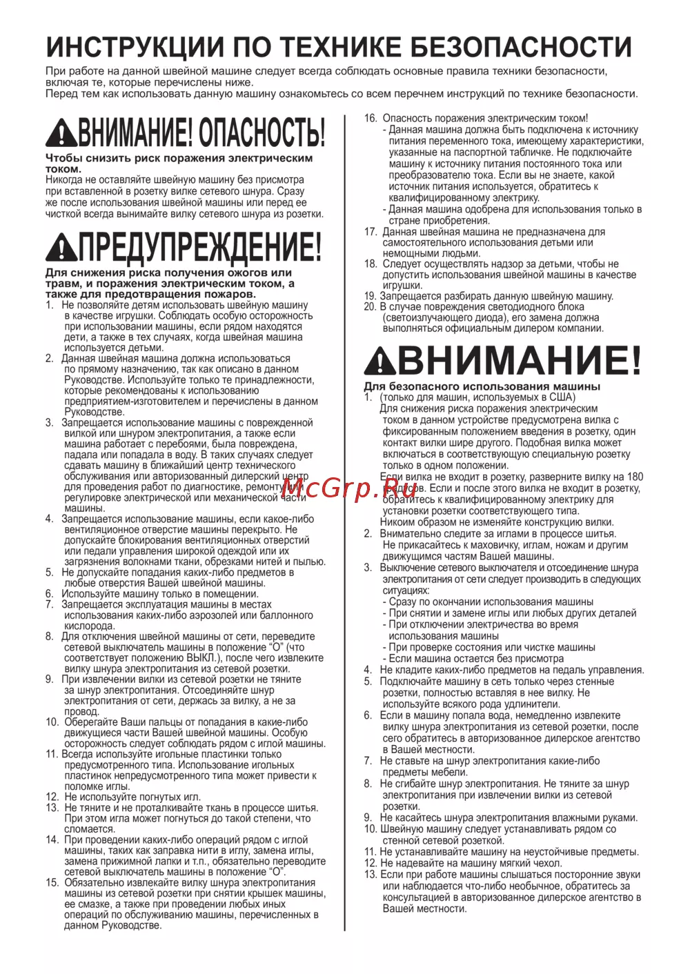 Перед тем как использовать данную машину ознакомьтесь со всем перечнем инструкций по технике безопасности.