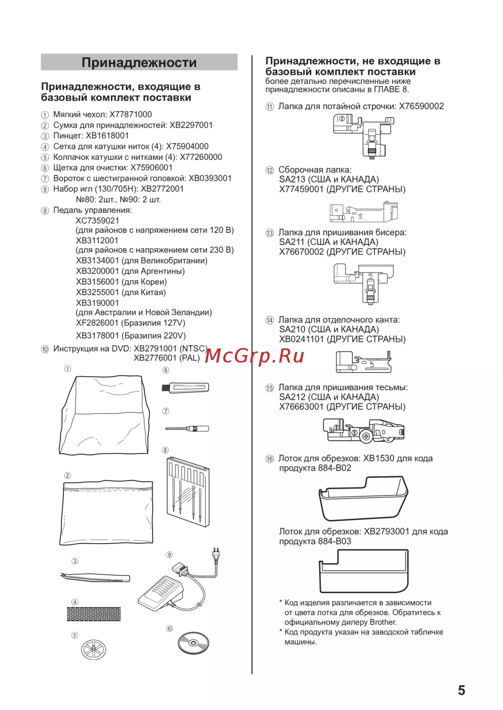 Brother 455D — основные и дополнительные принадлежности для швейных машин [7/40]