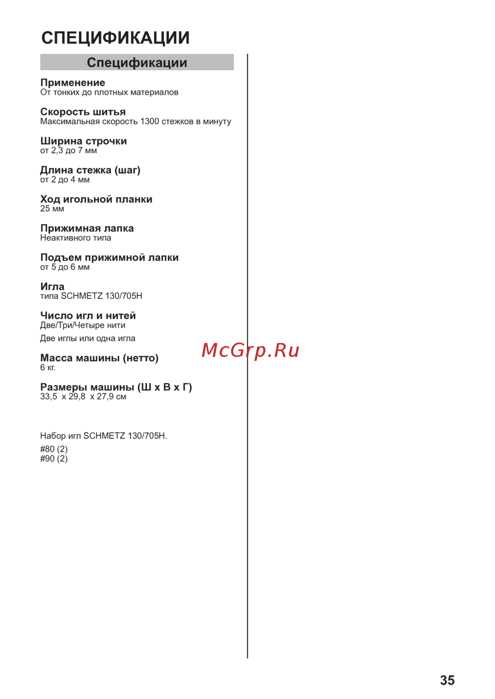 - Глава 8 использование лапок не входящих в базовый комплект поставки p.33