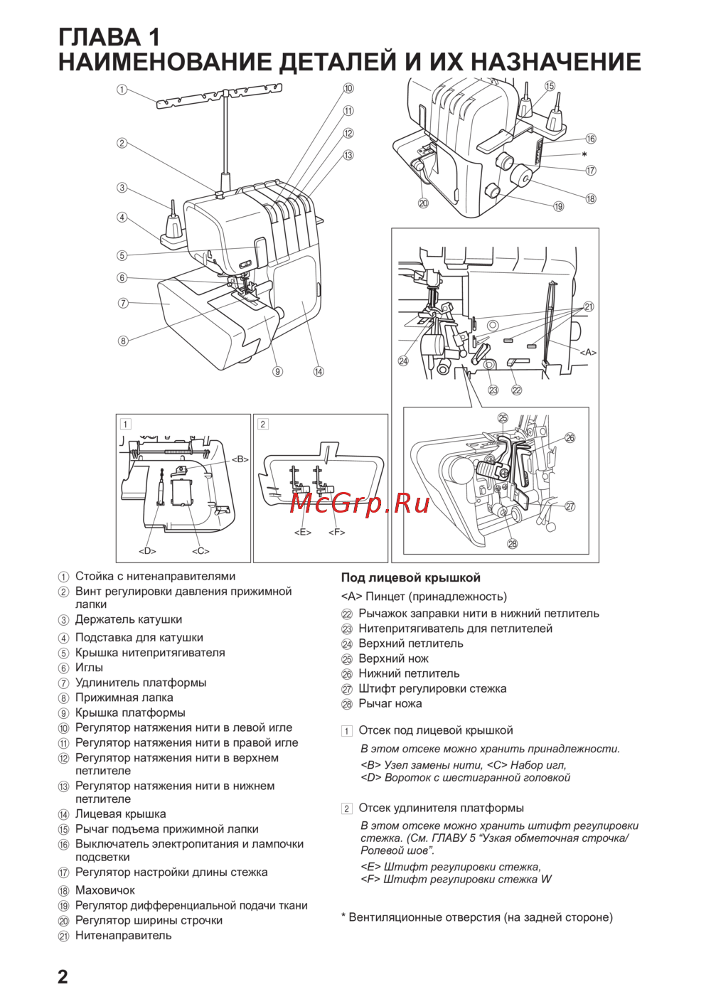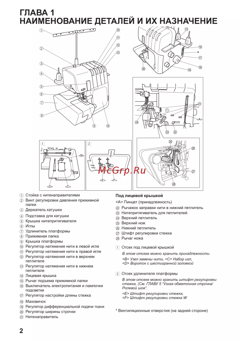 Brother 755D — обзор деталей и их назначения в швейных машинах [6/40]