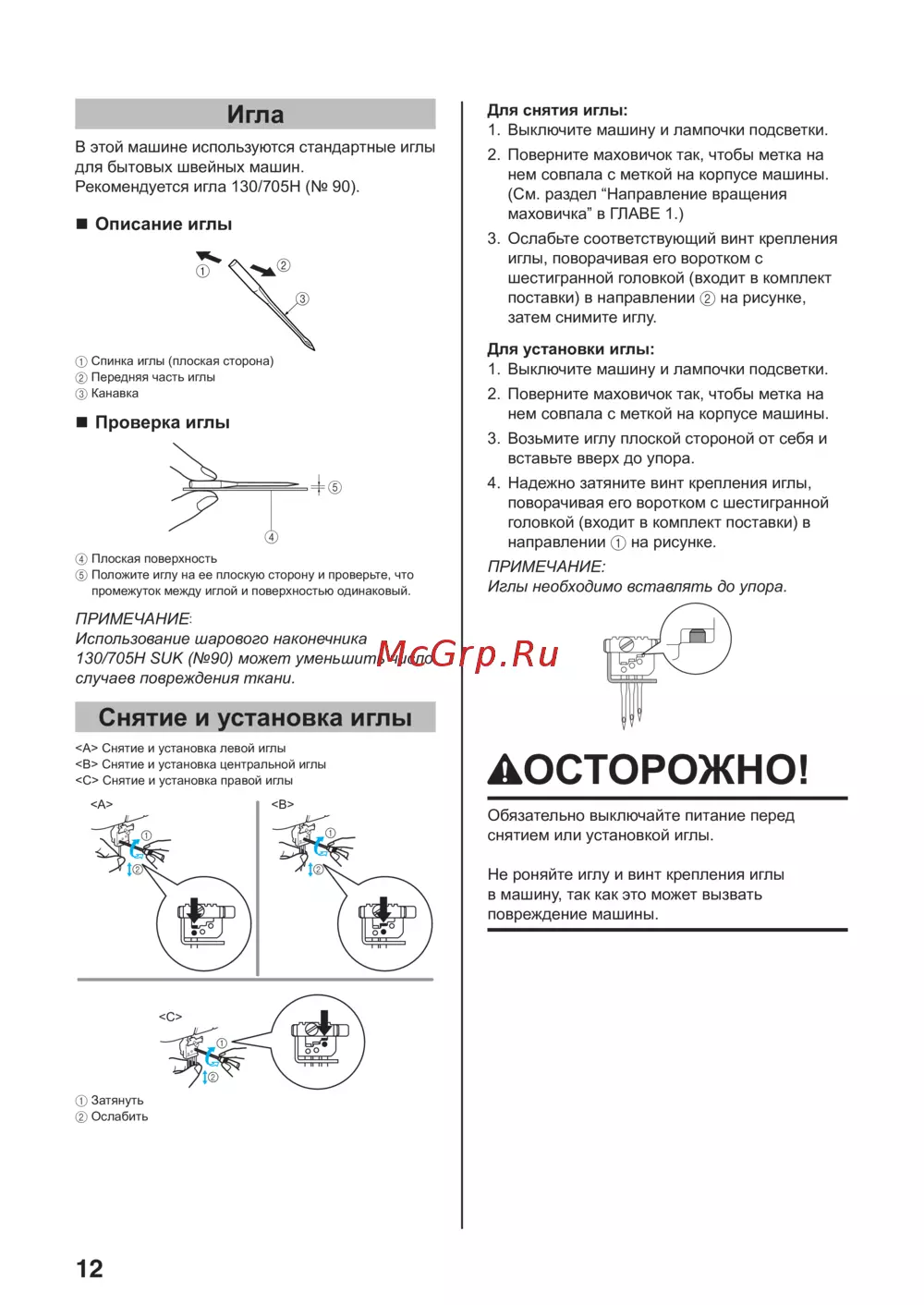 - Снятие и установка иглы p.14