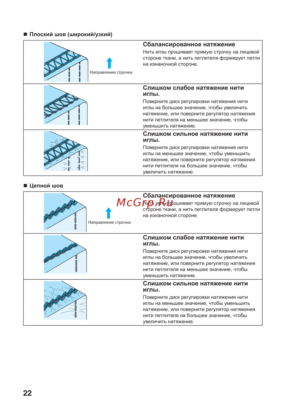 - Пример при шитье эластичной ткани без использования дифференциальной подачи ткань станет волнистой p.12