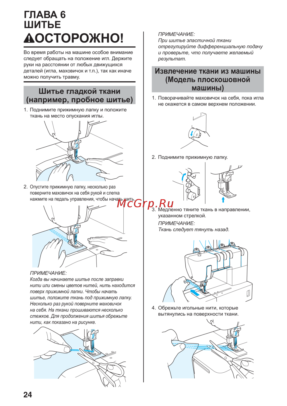 - Извлечение ткани из машины модель плоскошовной машины p.26