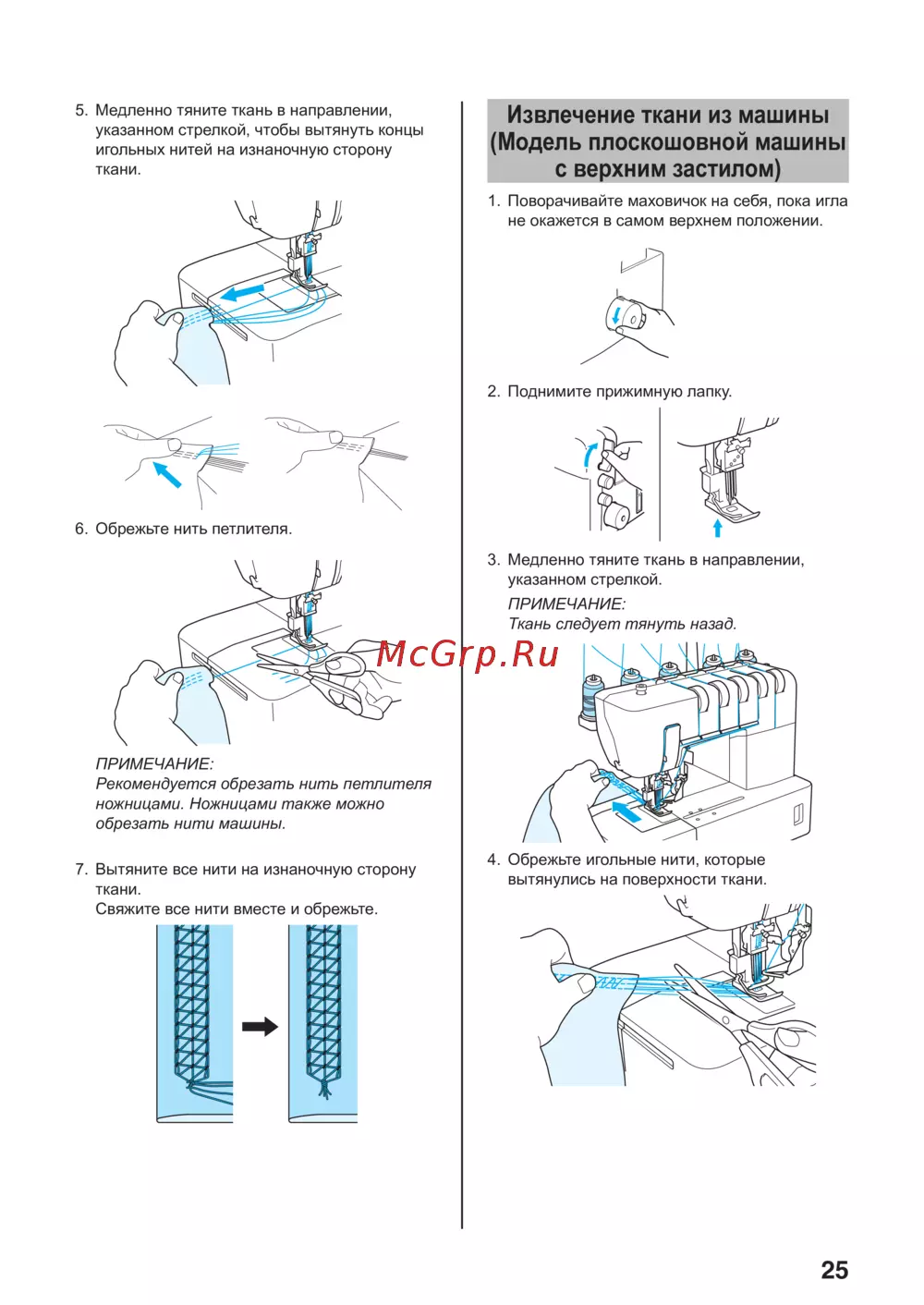 - Извлечение ткани из машины модель плоскошовной машины p.26