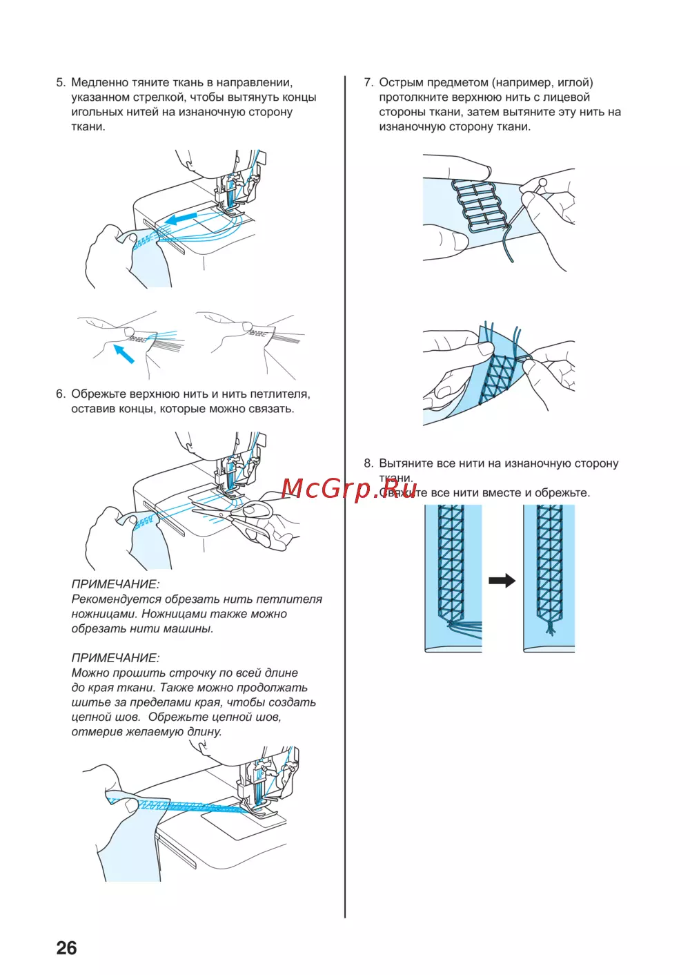 - Извлечение ткани из машины модель плоскошовной машины p.26