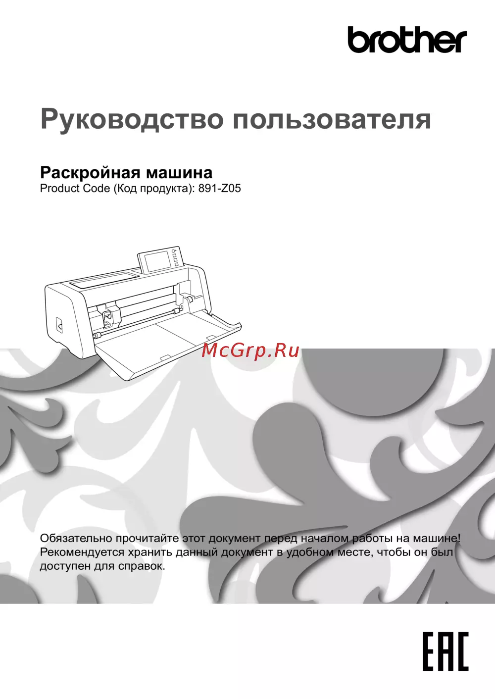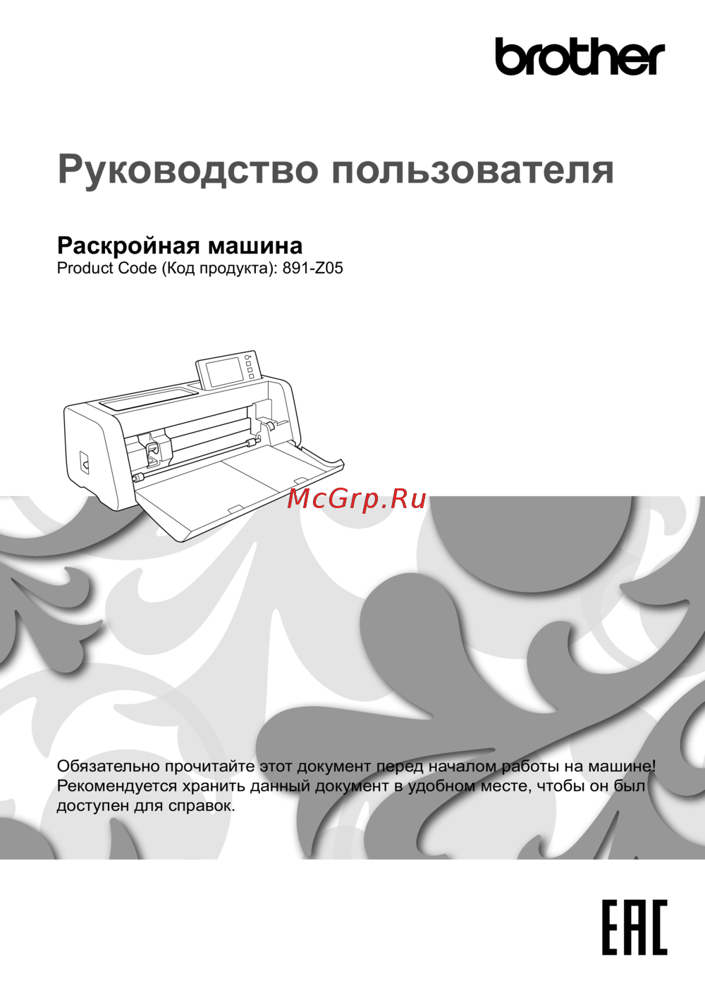 Обязательно прочитайте этот документ перед началом работы на машине!