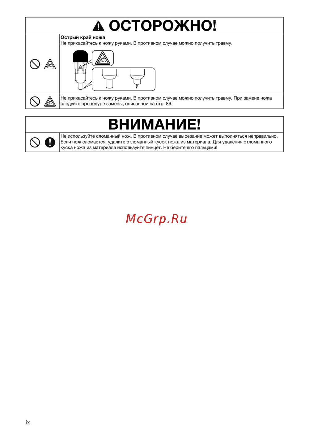 Brother SDX1000 — правила безопасности при использовании ножа для резки [10/120]