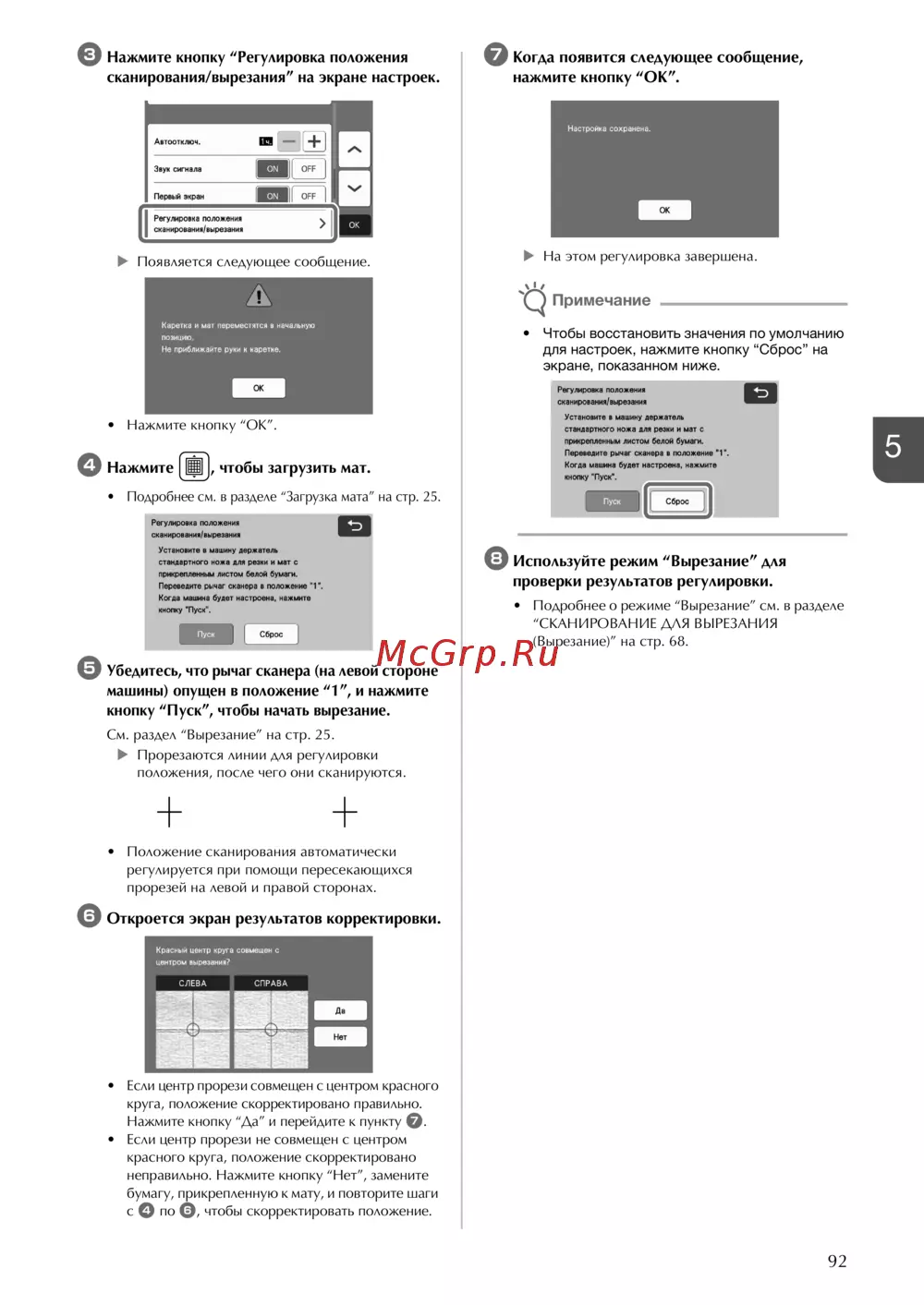 - В режиме вырезание можно автоматически отрегулировать положение вырезания если оно сместилось подробнее о режиме вырезание см в разделе сканирование для вырезания вырезание на стр 68 p.104