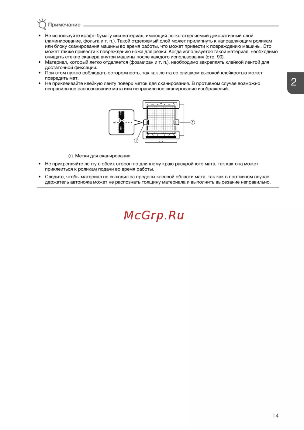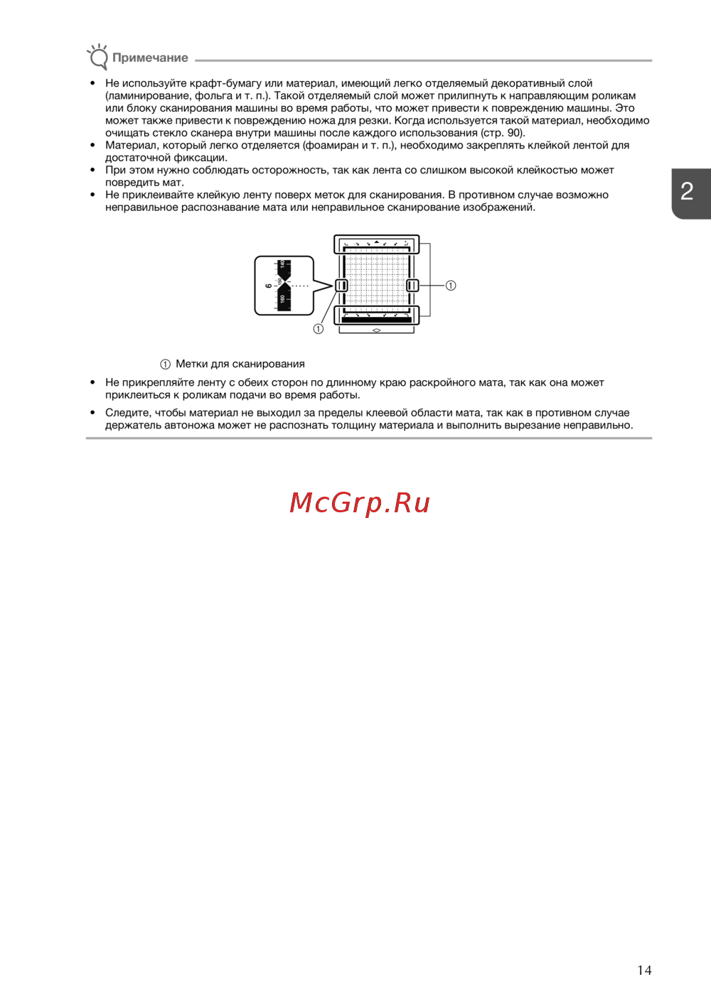 • Не приклеивайте клейкую ленту поверх меток для сканирования. В противном случае возможно