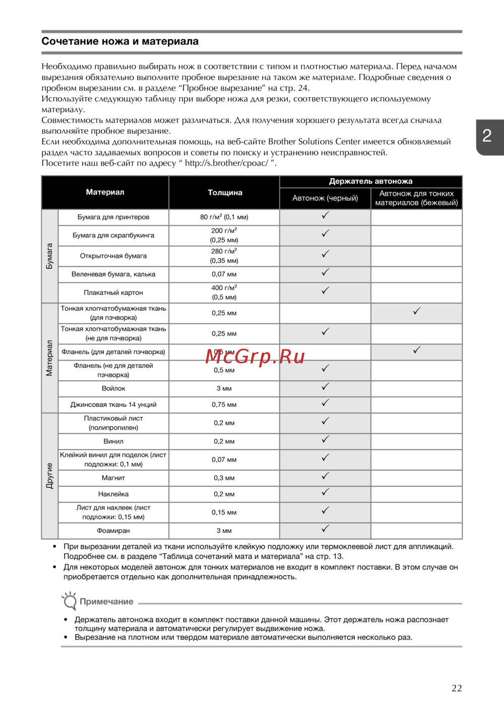 Подробнее см. в разделе “Таблица сочетаний мата и материала” на стр. 13.