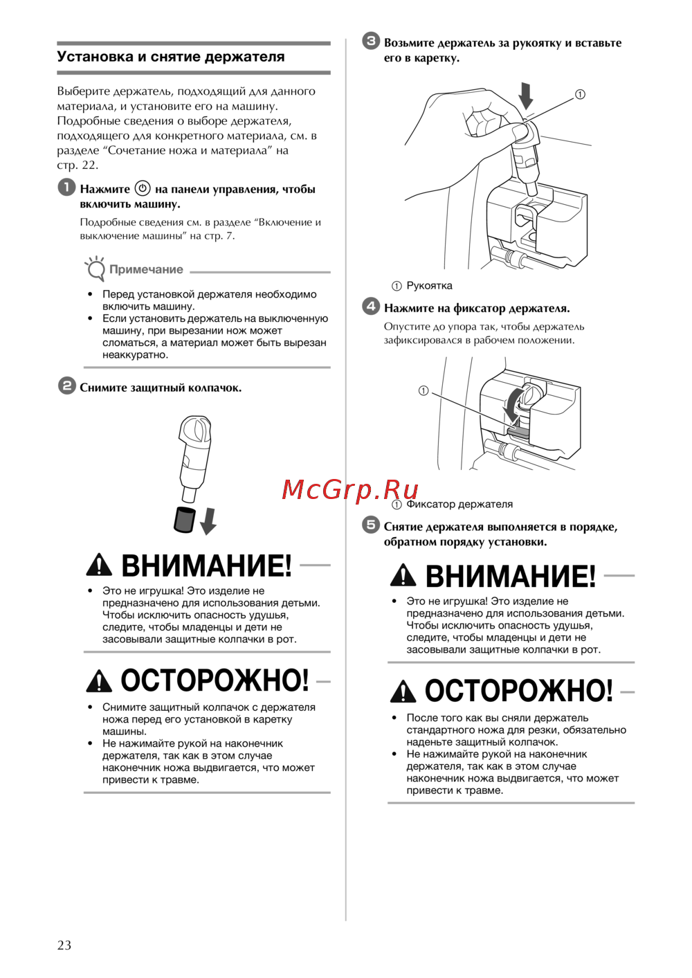 Узнайте, как правильно установить и снять держатель для резки. Следуйте инструкциям для безопасного использования и предотвращения травм.