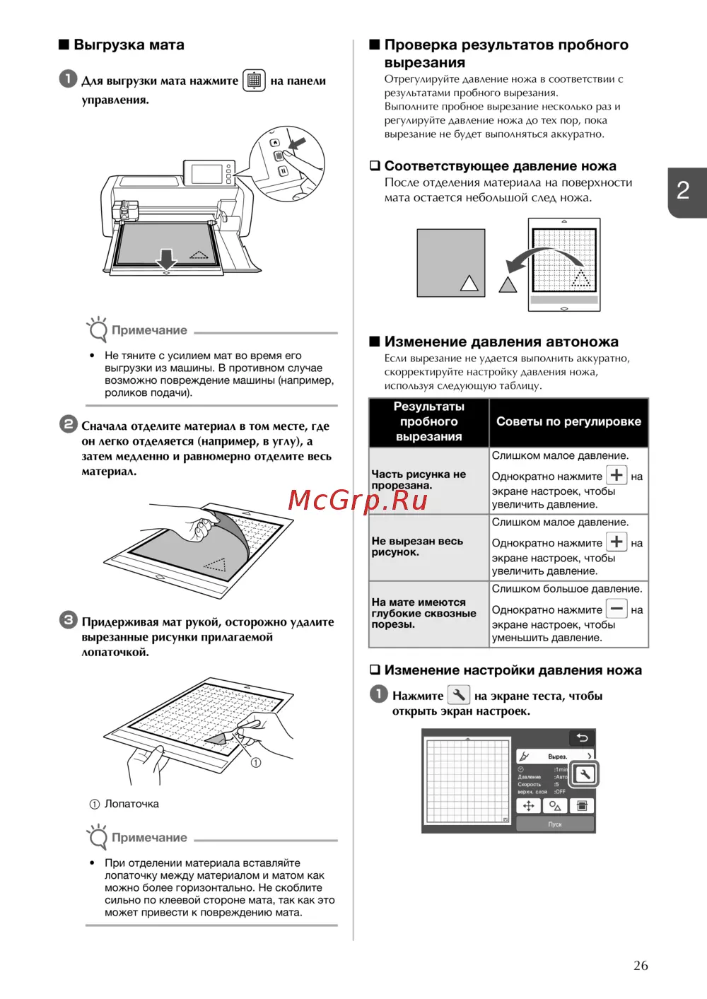 Узнайте, как правильно выгружать материал и настраивать давление ножа для качественного вырезания. Следуйте простым шагам для достижения лучших результатов.