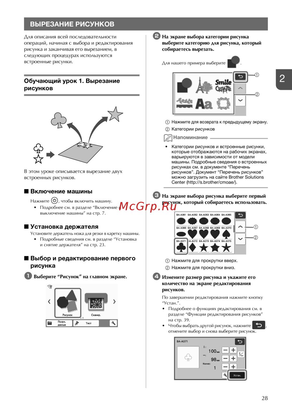 Brother SDX1000 — пошаговое руководство по вырезанию встроенных рисунков [41/120]