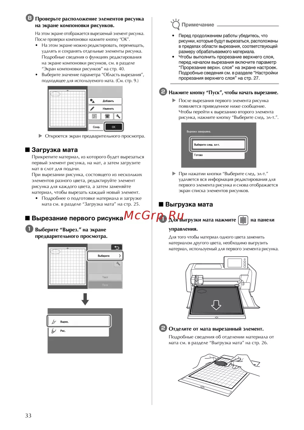 мата см. в разделе “Загрузка мата” на стр. 25.