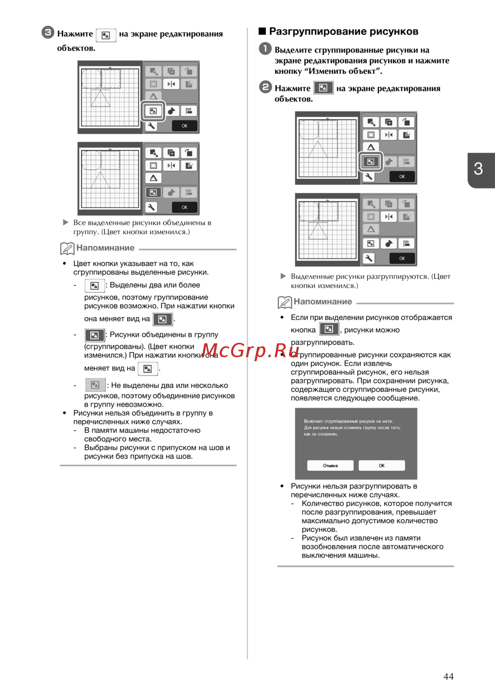 Brother SDX1000 — инструкция по группировке и разгруппировке рисунков в редакторе [57/120]