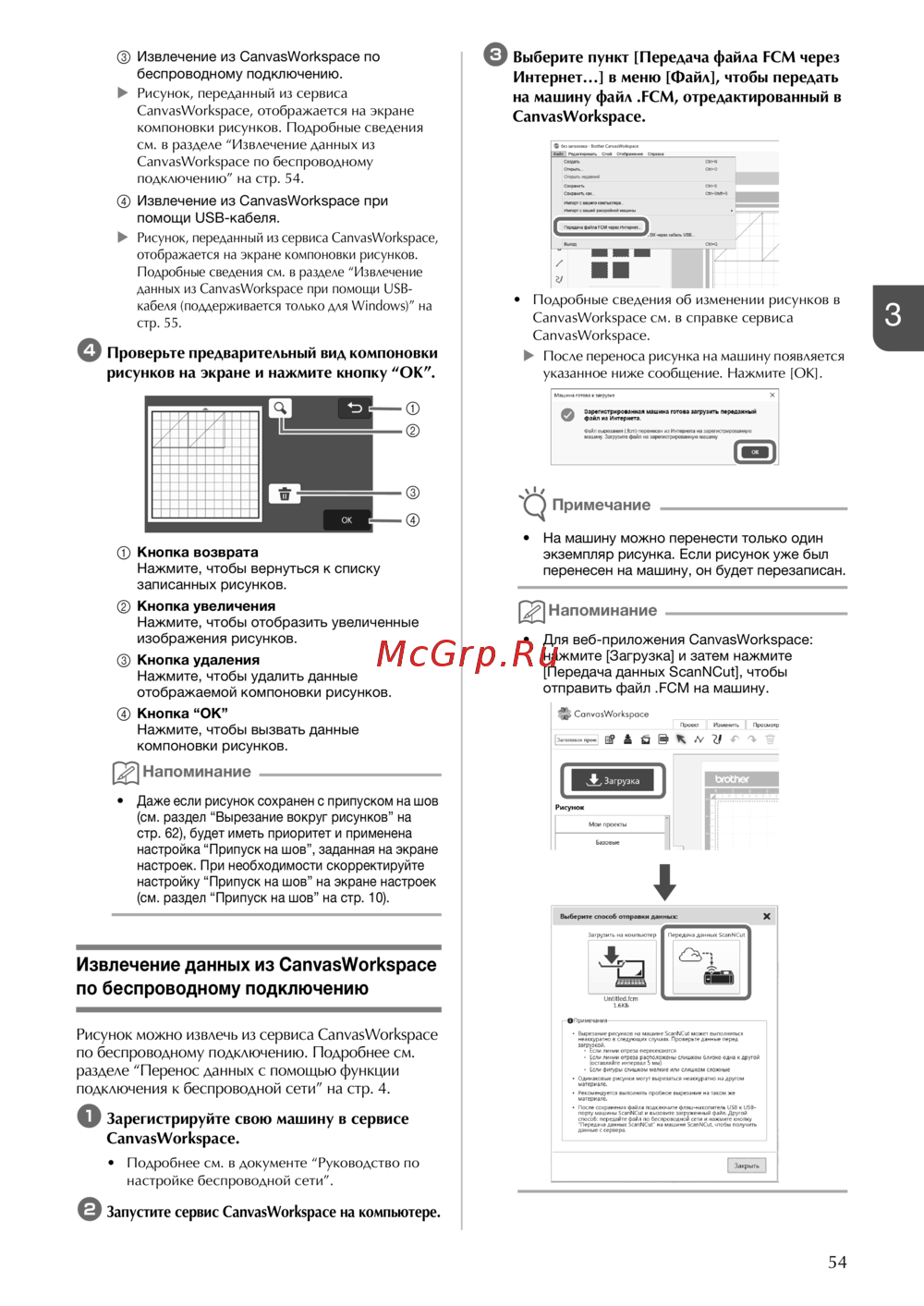 - Выполнение обновления при помощи приложения canvasworkspace p.115