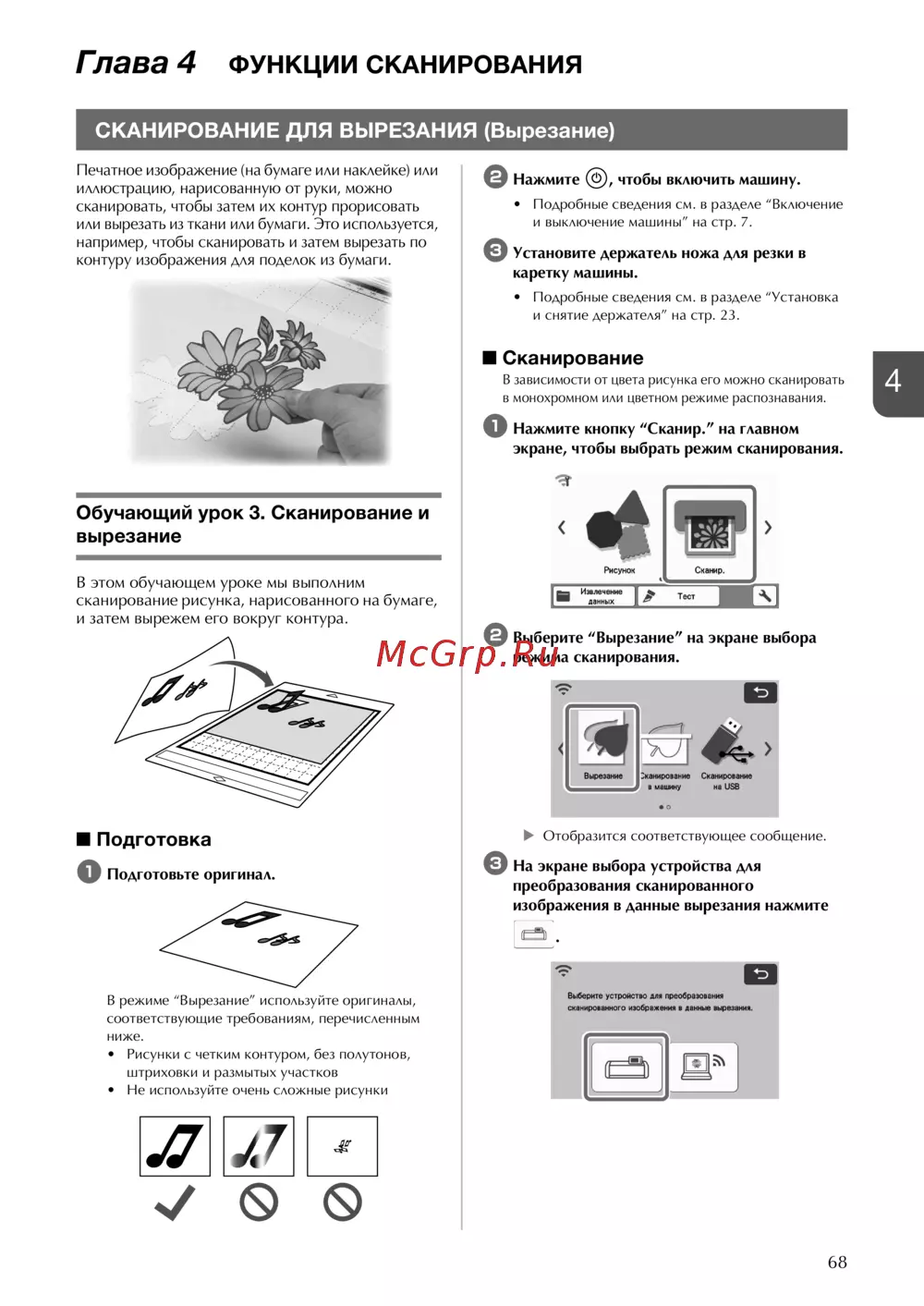 - В режиме вырезание можно автоматически отрегулировать положение вырезания если оно сместилось подробнее о режиме вырезание см в разделе сканирование для вырезания вырезание на стр 68 p.104