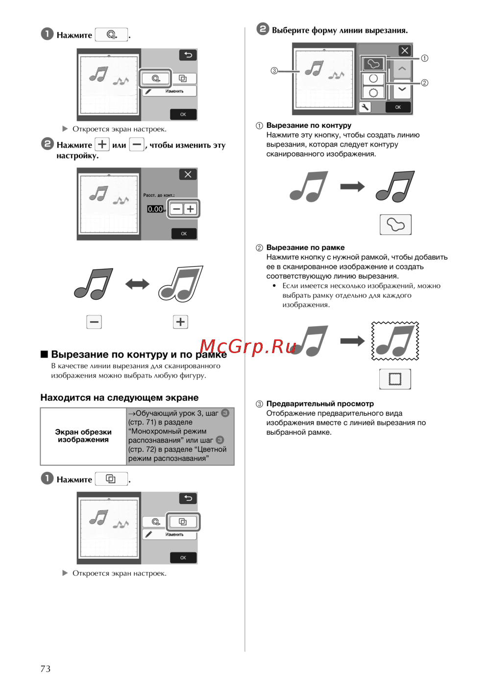 - В режиме вырезание можно автоматически отрегулировать положение вырезания если оно сместилось подробнее о режиме вырезание см в разделе сканирование для вырезания вырезание на стр 68 p.104