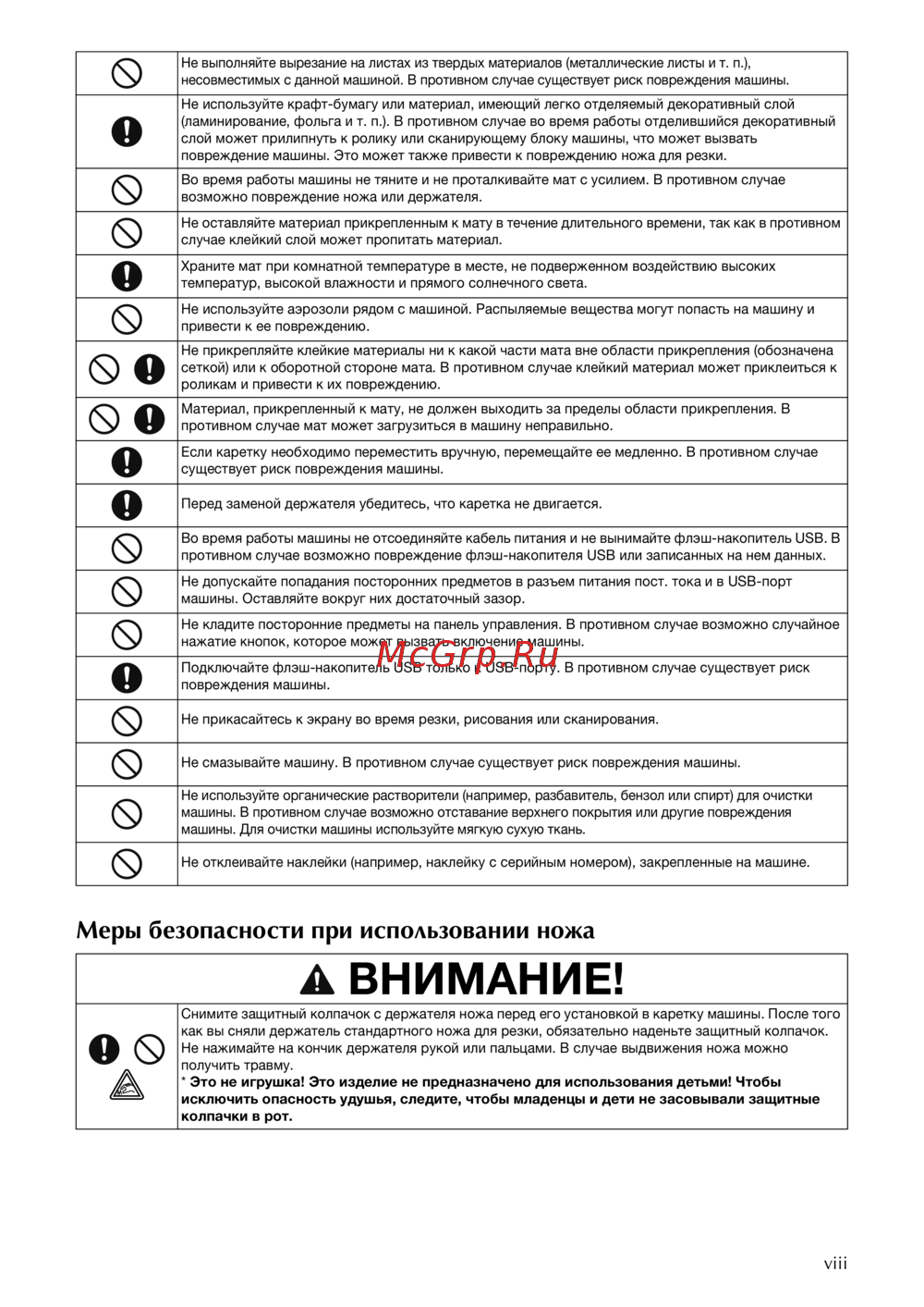 повреждение машины. Это может также привести к повреждению ножа для резки.