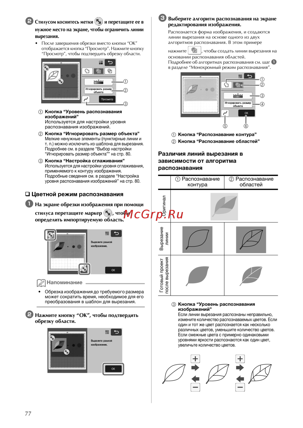 - В режиме вырезание можно автоматически отрегулировать положение вырезания если оно сместилось подробнее о режиме вырезание см в разделе сканирование для вырезания вырезание на стр 68 p.104