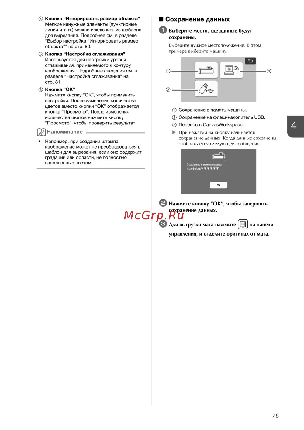- В режиме вырезание можно автоматически отрегулировать положение вырезания если оно сместилось подробнее о режиме вырезание см в разделе сканирование для вырезания вырезание на стр 68 p.104