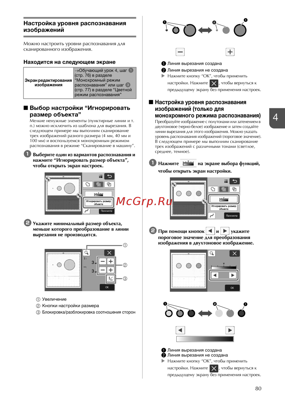 - В режиме вырезание можно автоматически отрегулировать положение вырезания если оно сместилось подробнее о режиме вырезание см в разделе сканирование для вырезания вырезание на стр 68 p.104