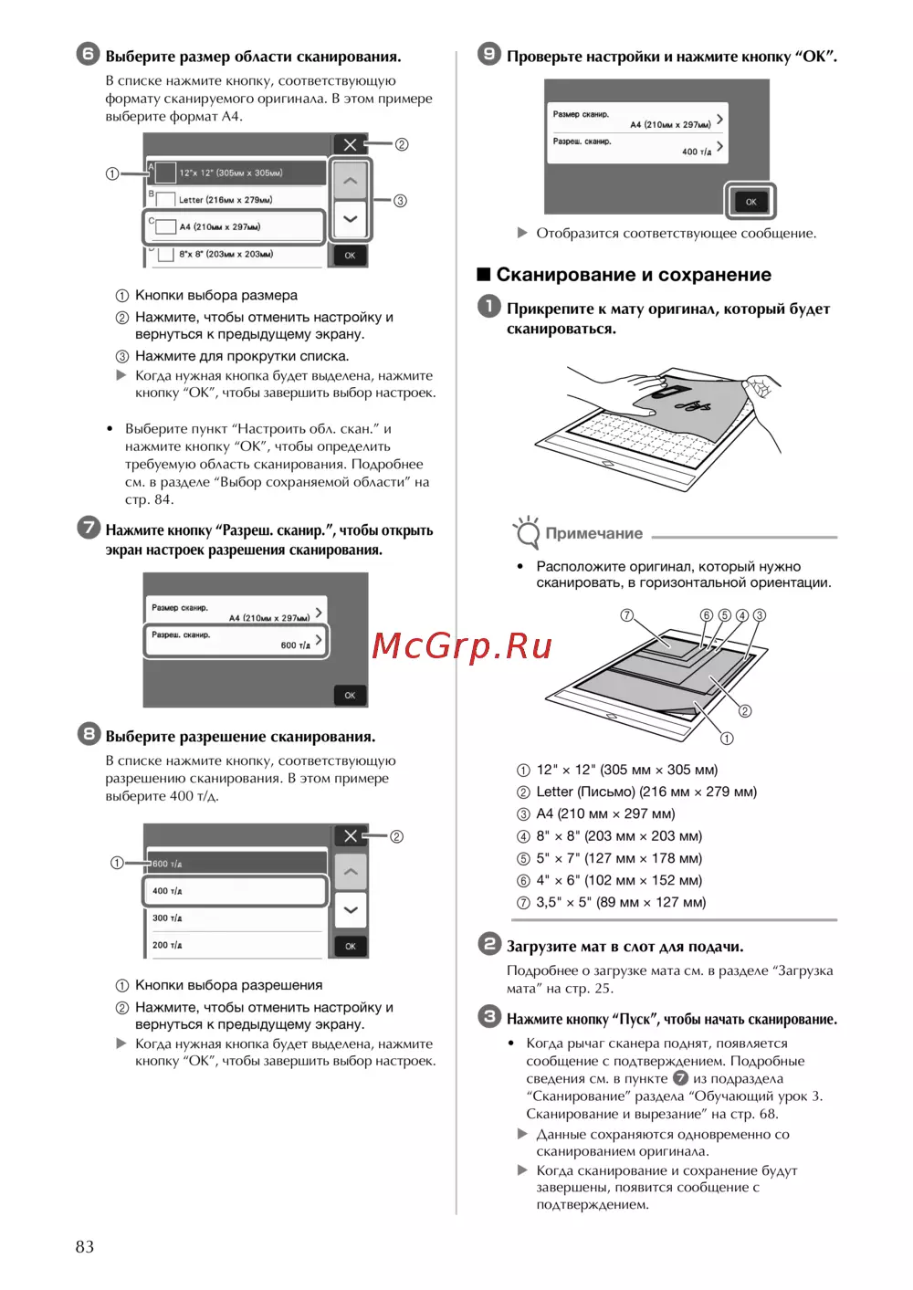 - Прикрепите к мату материал для сканирования p.98