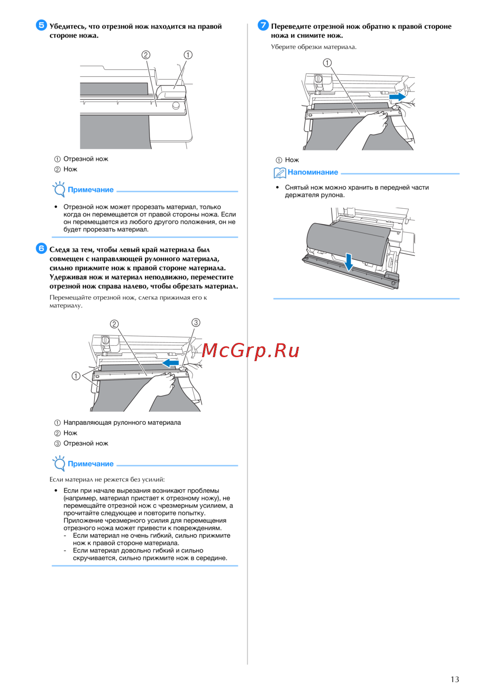 - Подробнее см в руководстве пользователя прилагаемом к раскройной машине p.30