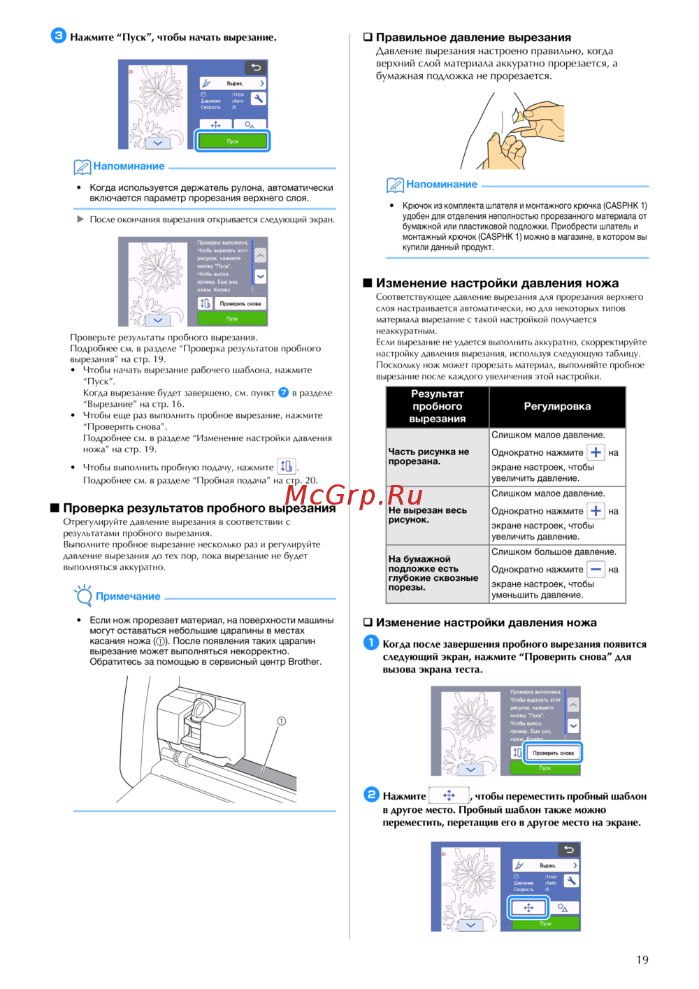 Brother SDX1000 — инструкции по вырезанию и настройке давления для материалов [20/38]
