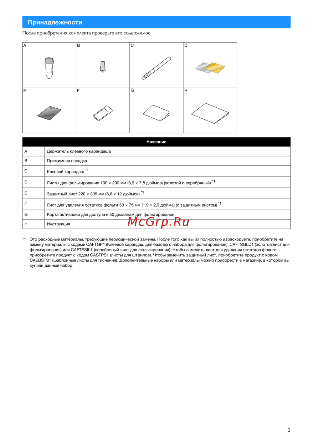 *1 Это расходные материалы, требующие периодической замены. После того как вы их полностью израсходуете, приобретите на