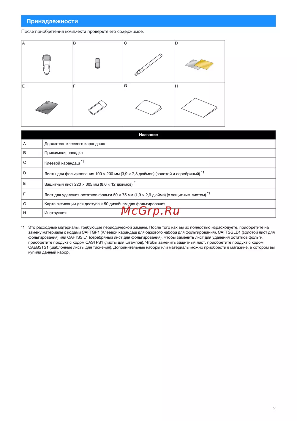 замену материалы с кодами CAFTGP1 (Клеевой карандаш для базового набора для фольгирования), CAFTSGLD1 (золотой лист для