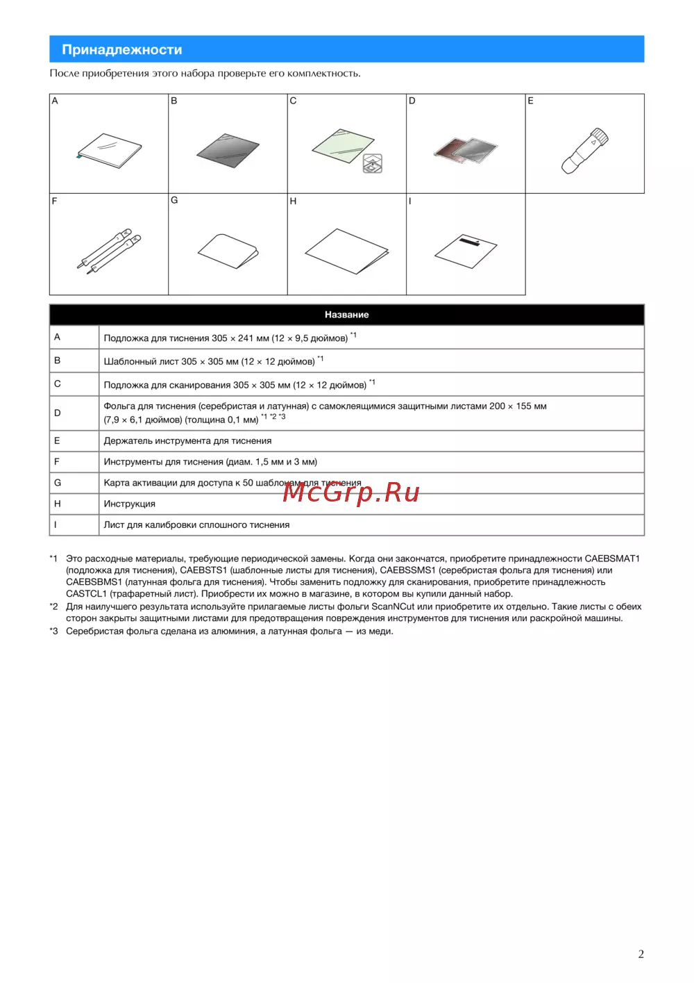 *2 Для наилучшего результата используйте прилагаемые листы фольги ScanNCut или приобретите их отдельно. Такие листы с обеих
