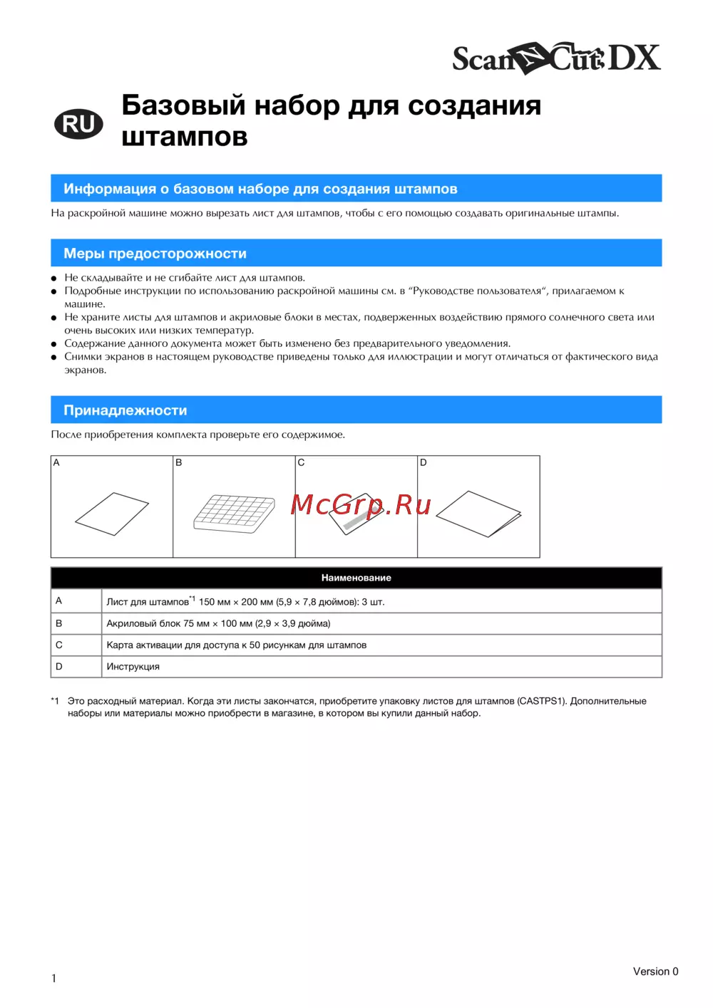 *1 Это расходный материал. Когда эти листы закончатся, приобретите упаковку листов для штампов (CASTPS1). Дополнительные