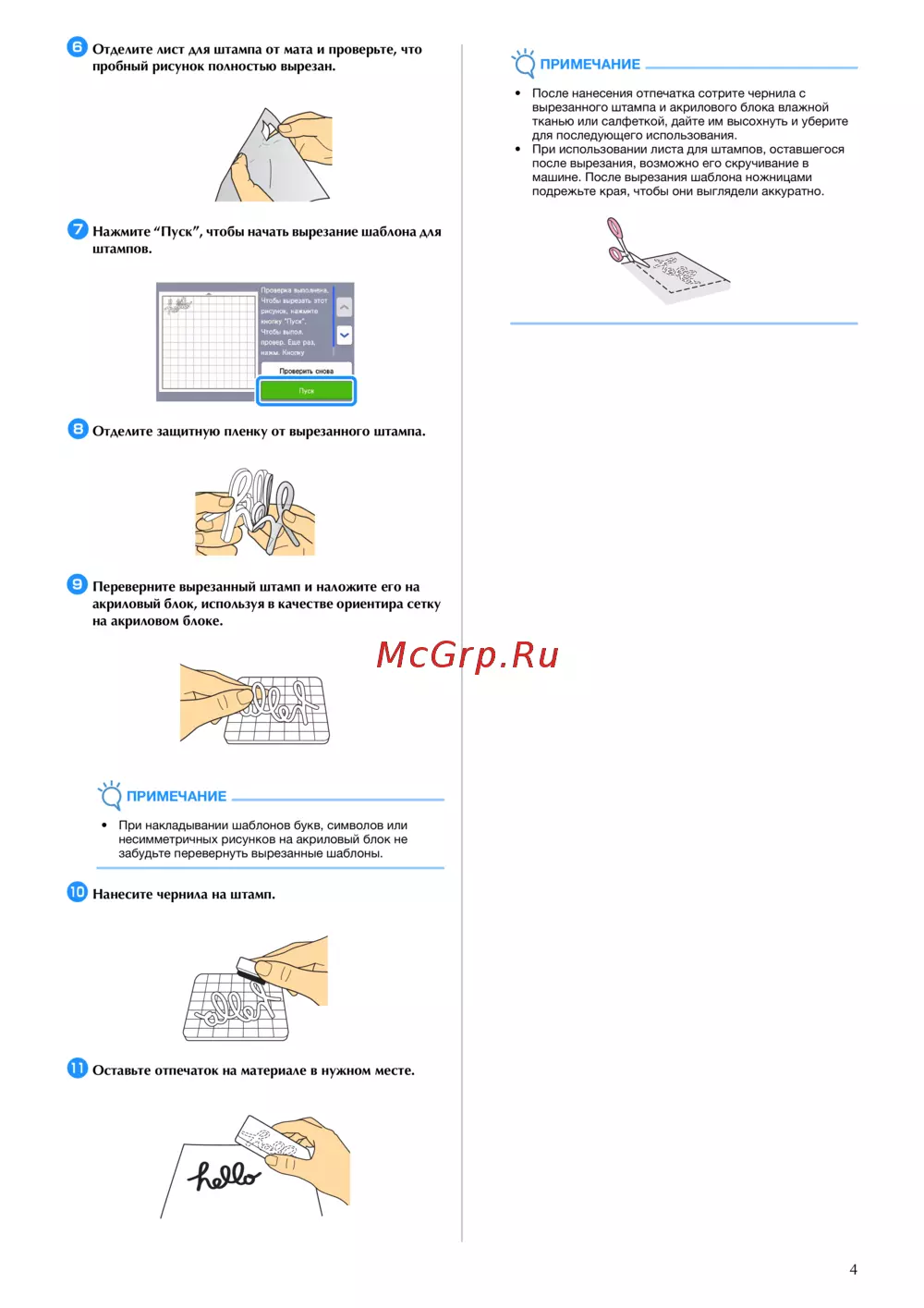 - Переверните вырезанный штамп и наложите его на акриловый блок используя в качестве ориентира сетку на акриловом блоке p.4