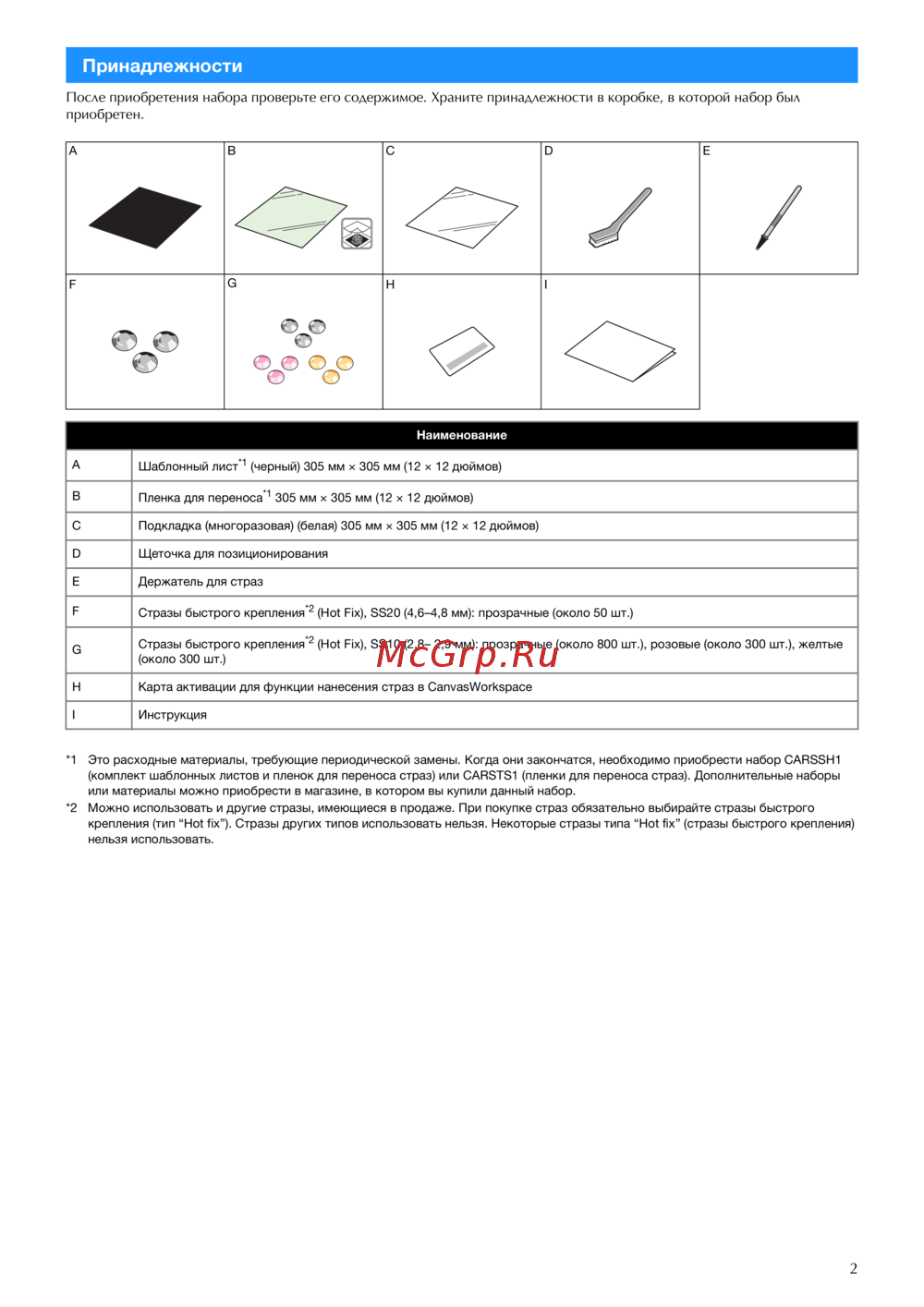 (комплект шаблонных листов и пленок для переноса страз) или CARSTS1 (пленки для переноса страз). Дополнительные наборы