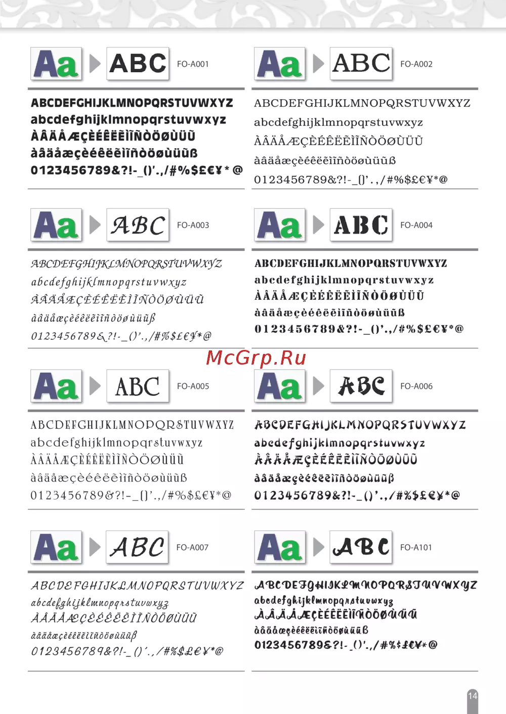 - 在fo a102花样中 即使输入小写字母 默认显示出来 的也会是大写字母 針對 fo a102 即使輸入小寫字母 花樣上仍以大寫字 母排列 p.16