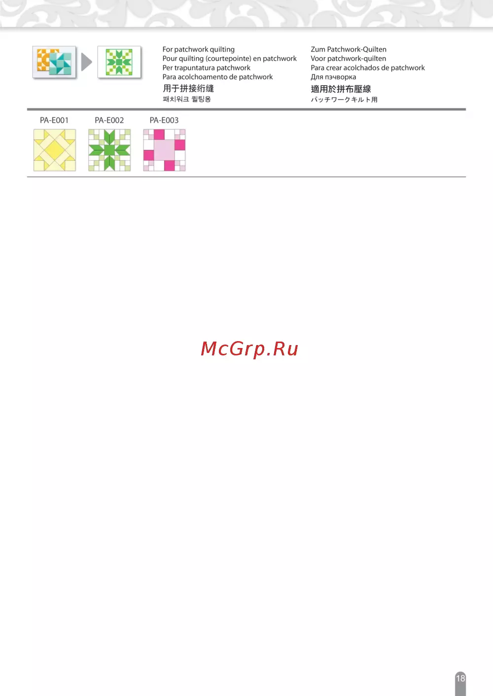 - 用于拼接绗缝 適用於拼布壓線 p.19