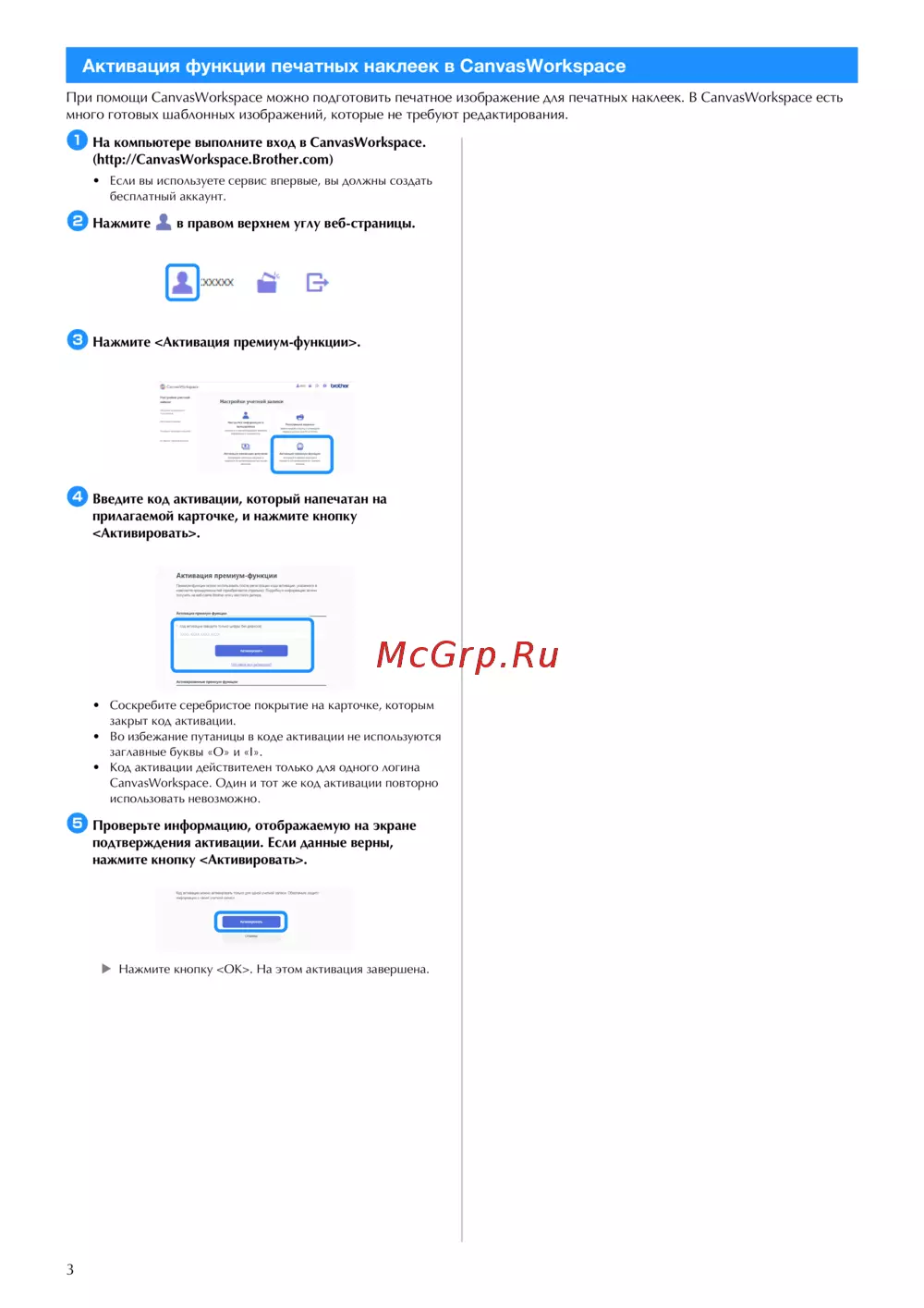 d Введите код активации, который напечатан на