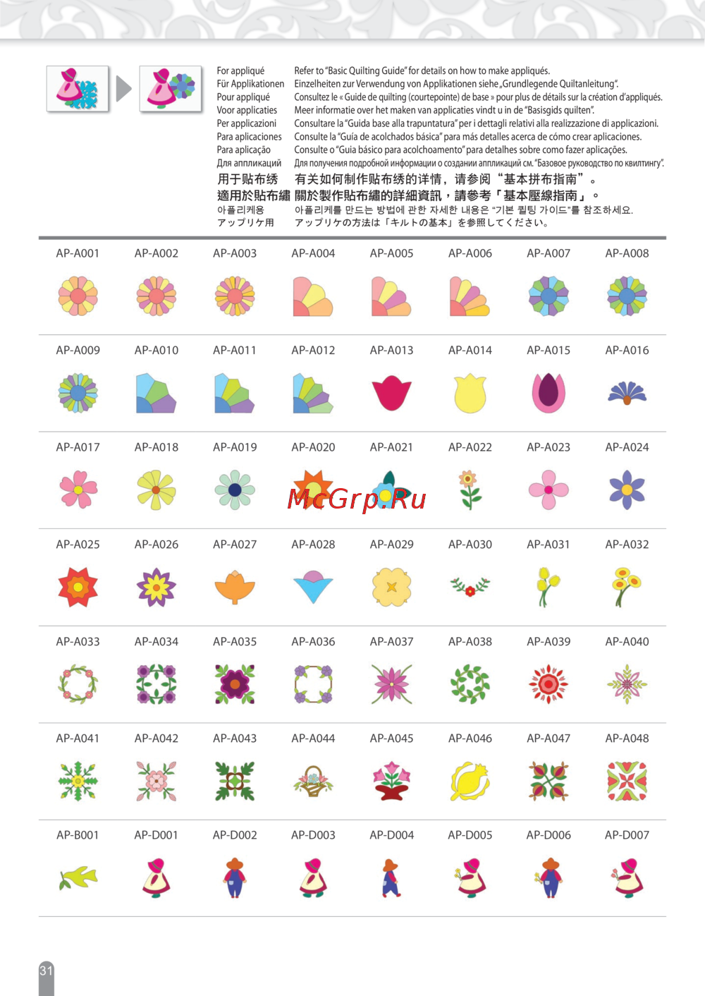Для получения подробной информации о создании аппликаций см. “Базовое руководство по квилтингу”.
